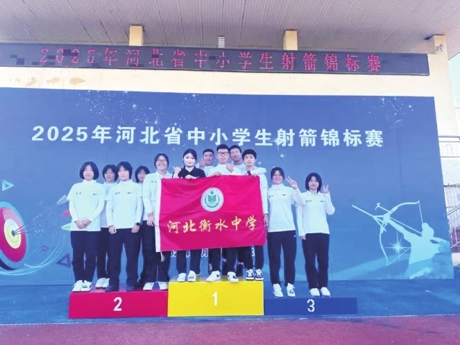 在2025年河北省中小学生射箭锦标赛上,衡水中学射箭队获得7金4银3铜与团体总分第一名。